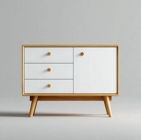- Matériau : Structure en bois de pin massif et panneaux de fibres à haute densité, poignées en alliage de zinc noir.